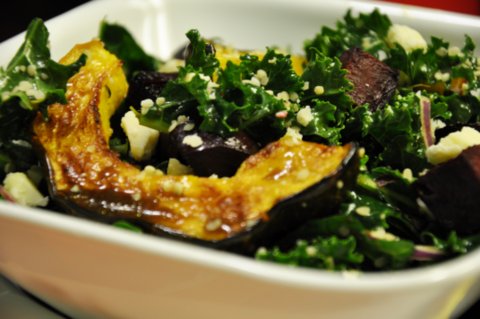 - Serve salad with kale topped with beets, squash and your toppings of choice (I like all of the above!)